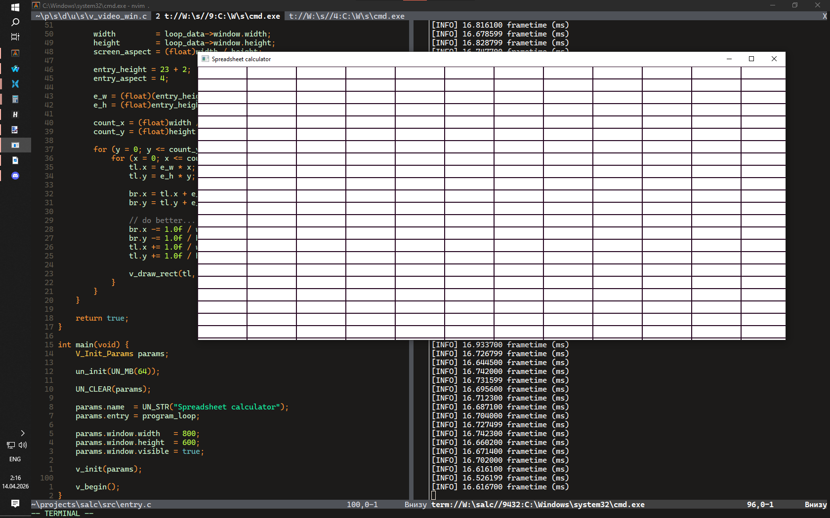 first day of the spreadsheet calculator. Need to get fonts working as soon as I can. &salc